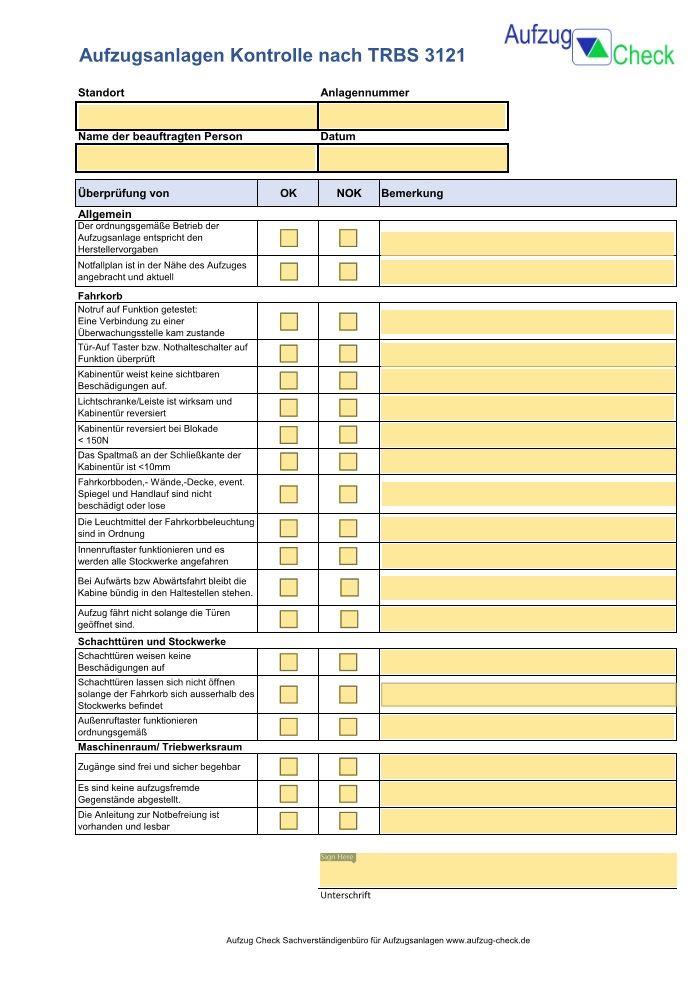 Der Betreiber ist gemäß § 4 BetrSichV zu einer regelmäßigen Inaugenscheinnahme und Funktionskontrolle der Aufzugsanlagen sowie deren Dokumentation verpflichtet.